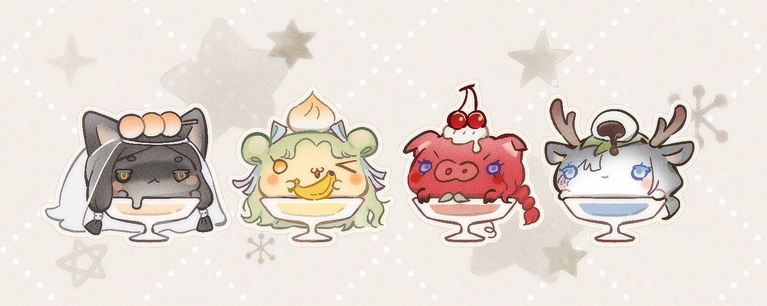 저 당고와 흘러내린 볼... 원숭이... 돼지코...돼지꼬리...백합공인데 올라가있는 체리... 복흑스러운 초코찹쌀떡...수줍은 홍조.......